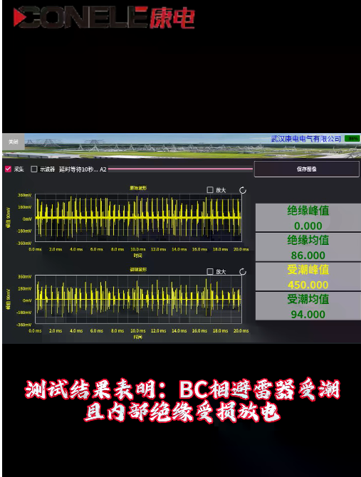 测试结果表明:BC相避雷器受潮、且内部绝缘受损放电。